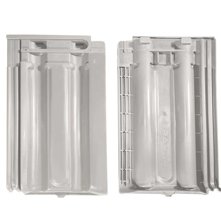 La teja francesa plástica FRAMAR está diseñada para ofrecer la estética tradicional de la teja cerámica con la resistencia del polipropileno. Su peso ultraliviano de solo 430 gramos por unidad permite una instalación rápida, segura y con menor exigencia estructural en tu techo.