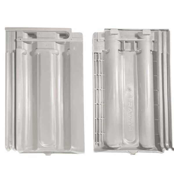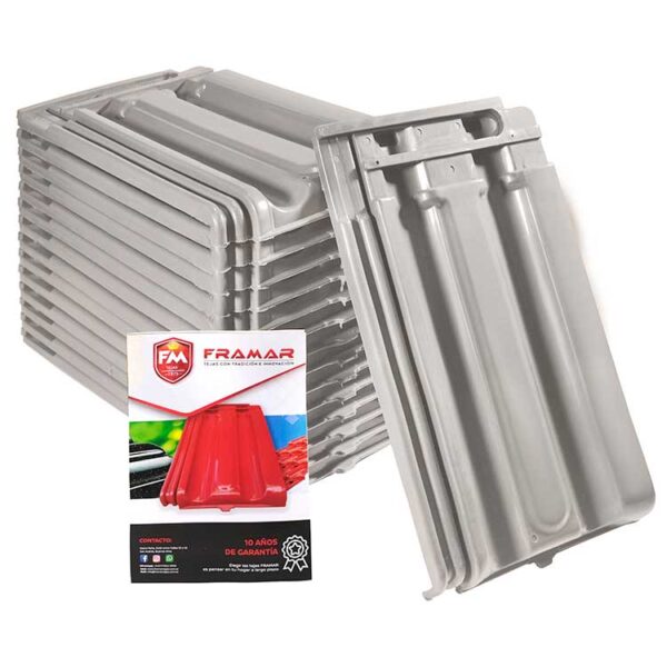 La teja francesa plástica FRAMAR está diseñada para ofrecer la estética tradicional de la teja cerámica con la resistencia del polipropileno. Su peso ultraliviano de solo 430 gramos por unidad permite una instalación rápida, segura y con menor exigencia estructural en tu techo.