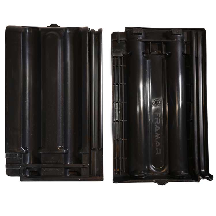 La teja francesa plástica FRAMAR está diseñada para ofrecer la estética tradicional de la teja cerámica con la resistencia del polipropileno. Su peso ultraliviano de solo 430 gramos por unidad permite una instalación rápida, segura y con menor exigencia estructural en tu techo.