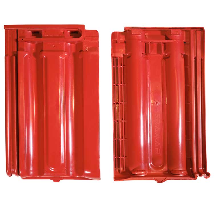 La teja francesa plástica FRAMAR está diseñada para ofrecer la estética tradicional de la teja cerámica con la resistencia del polipropileno. Su peso ultraliviano de solo 430 gramos por unidad permite una instalación rápida, segura y con menor exigencia estructural en tu techo.